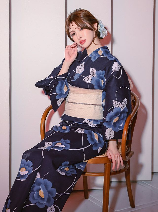 涼しげなネイビー浴衣に