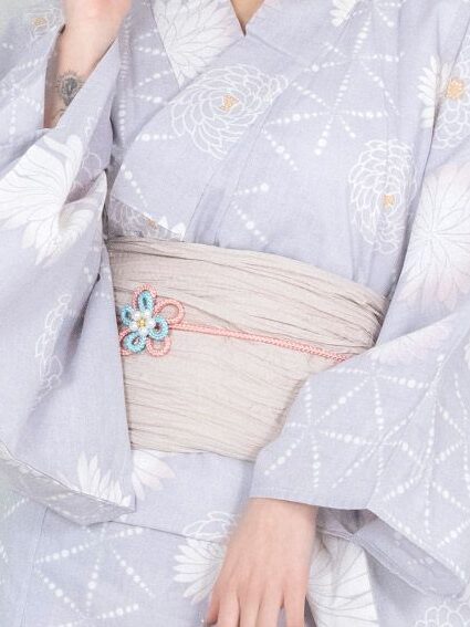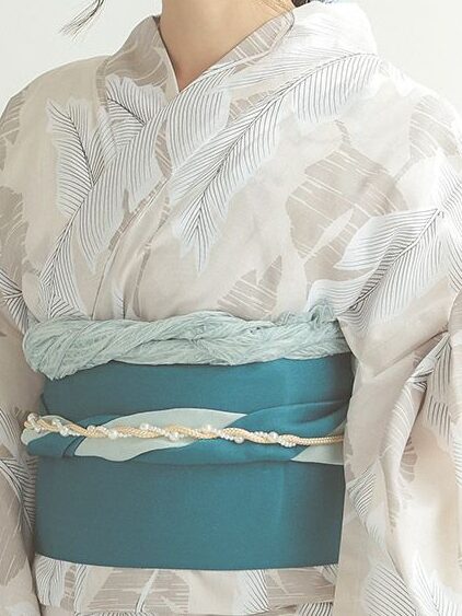 やわらかな色合いの帯を合わせ、