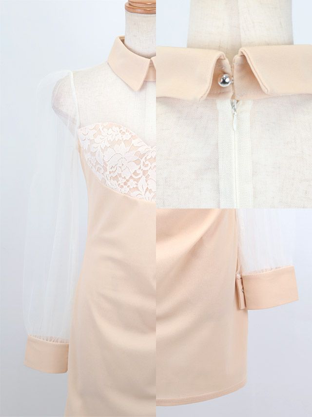 ミニドレス 長袖 シアー襟デザイン フラワー刺繍 プチプラ タイト キャバドレス