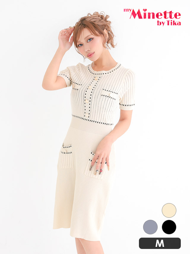 上品クラシカル半袖ニットドレス