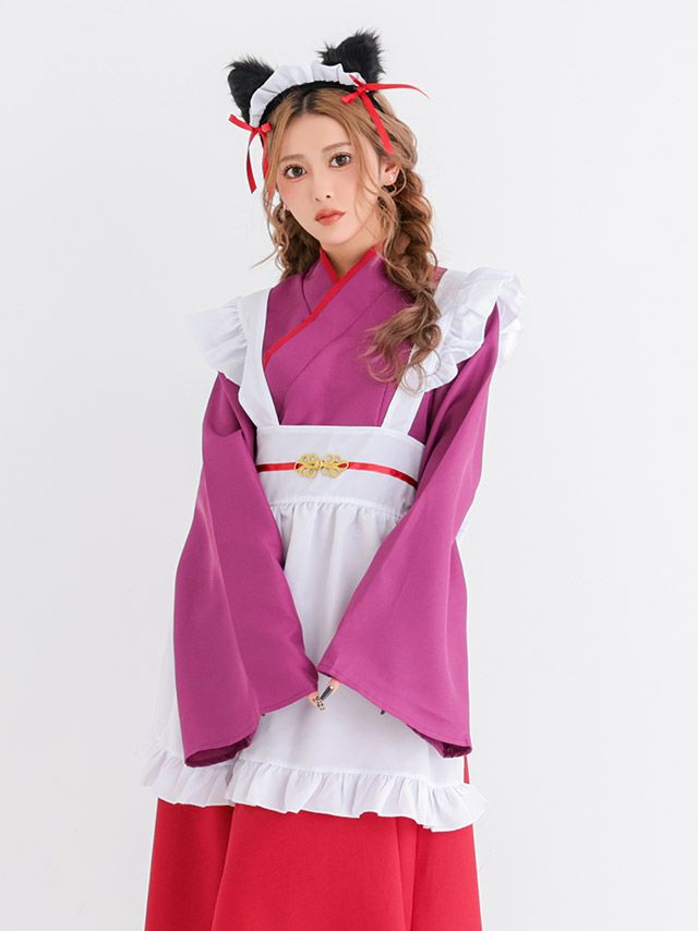 甘く可愛く差をつけるお巫女さん♡ [新作]アニマル 猫 和装 膝丈 ガーリー お化けの日 メイド コスプレ[3点セット](ワンピース/エプロン/カチューシャ)