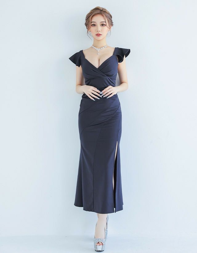 フリル袖スリット入りタイト訳ありロングドレス