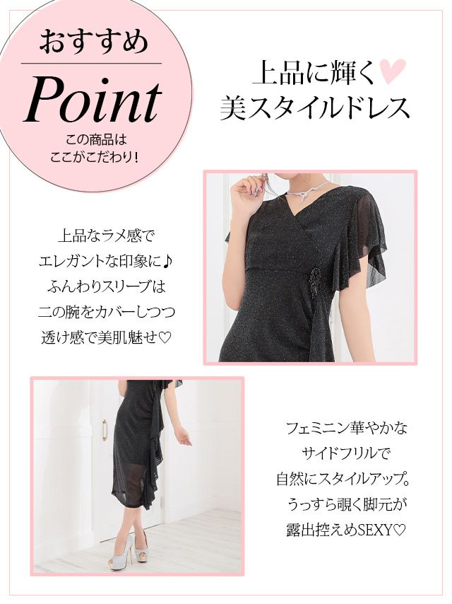 4. [ワケありセール] 袖ありフレアスリーブシースループチプラ膝丈ドレス (Mサイズ/Lサイズ)(中尾みほ/キャバドレス着用)[myMinette/マイミネット]