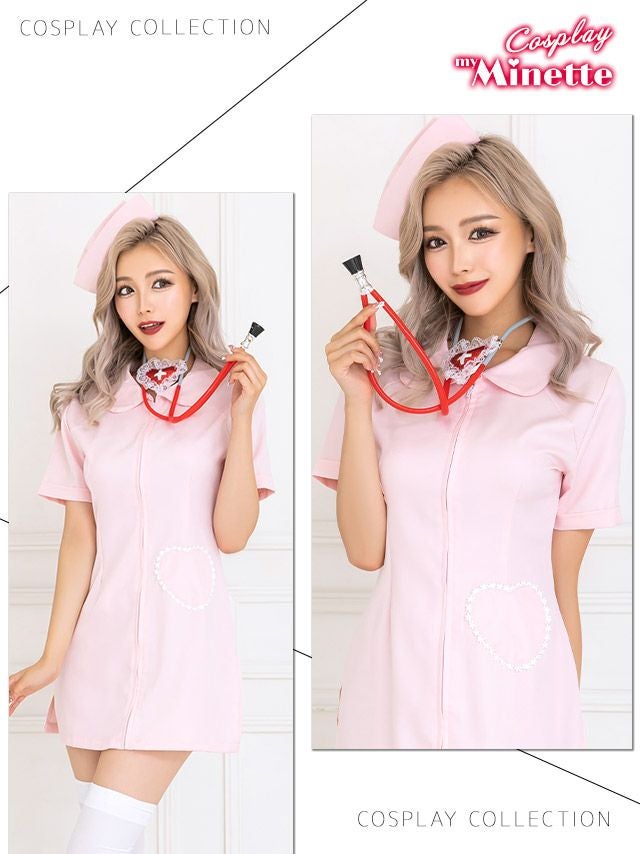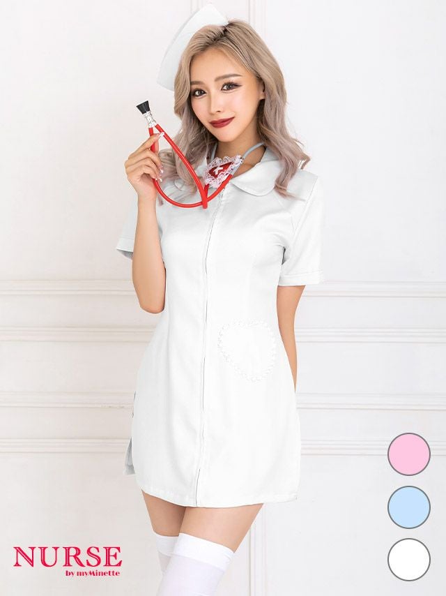 [ワケありセール] 2点set サイドスリットセクシーミニプチプラナース [ワンピース+帽子]