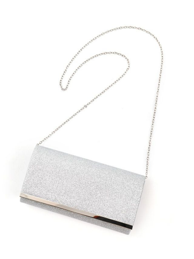 上品ラメメタルチェーンショルダー付き2Wayバッグのシルバーイメージ