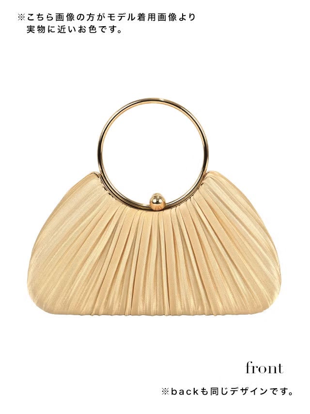 ハンドバッグ リングハンドル サテン プリーツ チェーン 2Way の商品画像2枚目