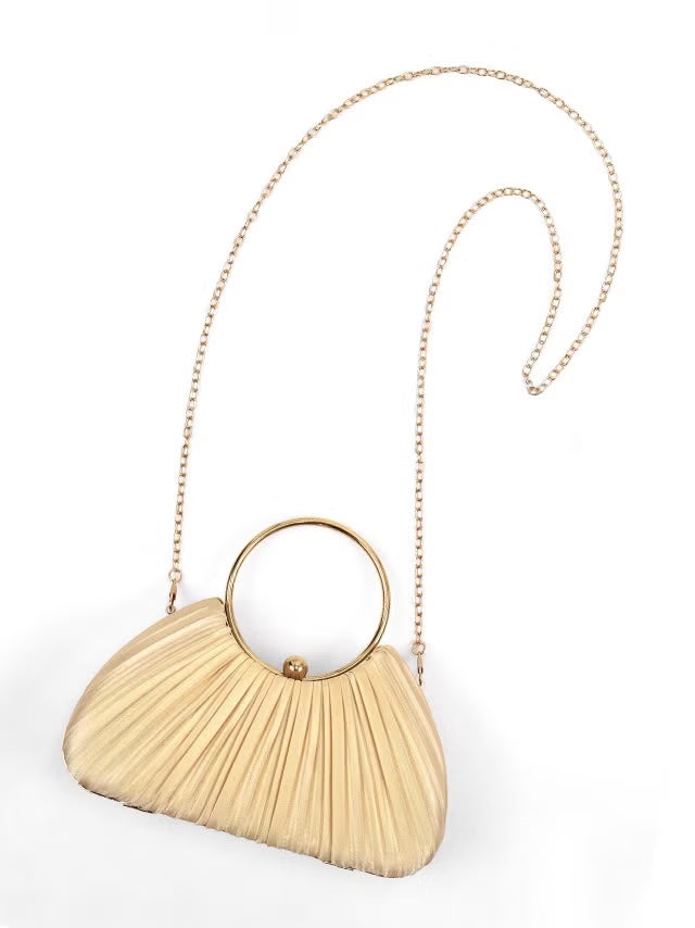 ハンドバッグ リングハンドル サテン プリーツ チェーン 2Way の商品画像1枚目