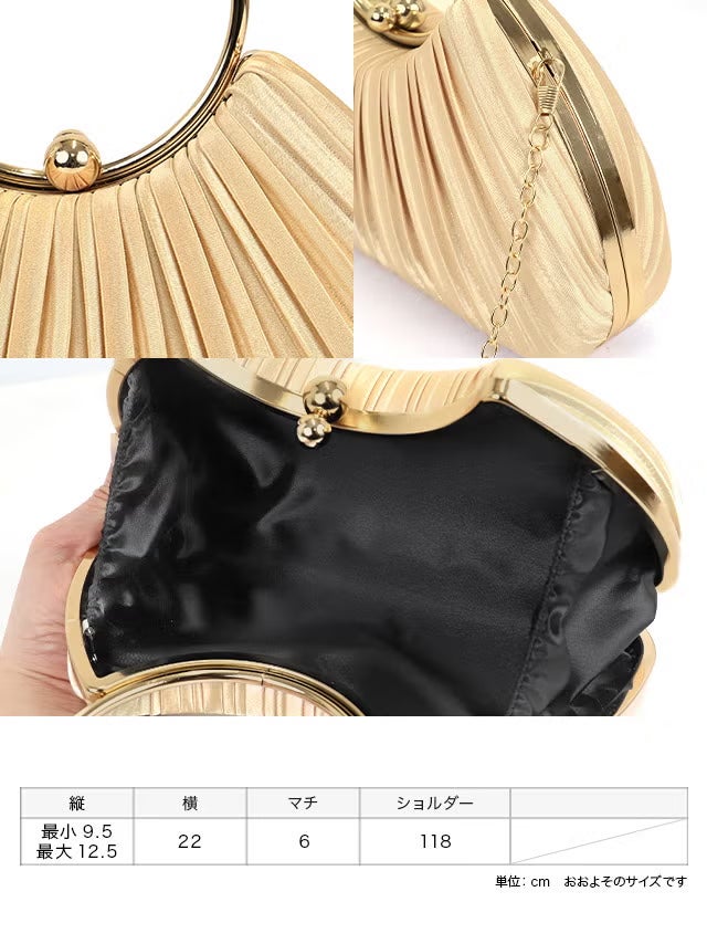 ハンドバッグ リングハンドル サテン プリーツ チェーン 2Way のサイズ表