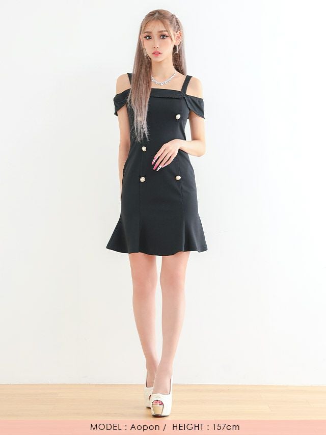 ミニドレス プチプラ 新人 タイト オフショル 低身長 胸元隠し ダブルボタン 黒 キャバドレス (あおぽん着用/S〜XLサイズ対応) | myMinette/マイミネット