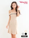 3. ミニドレス プチプラ 新人 タイト オフショル 低身長 胸元隠し ダブルボタン 黒 キャバドレス (あおぽん着用/S〜XLサイズ対応) | myMinette/マイミネット