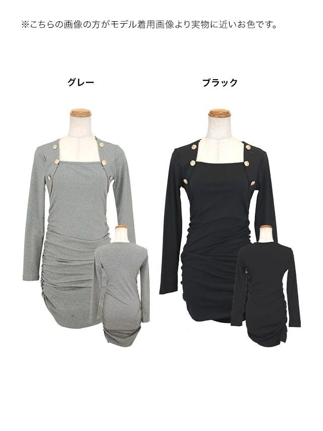 スクエアネック×ゴールドボタンが上品なアクセントに!