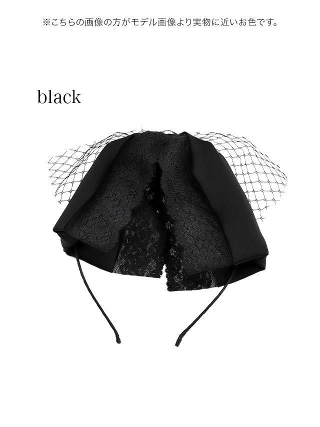 ビジュー付きあみレースビッグリボンカチューシャバースデーヘアバースデーアクセサリー