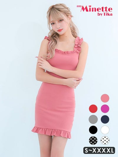 キャバドレス 安い 激安 ミニ丈 キャバクラ クラブ ラウンジ ドット柄 フリル ノースリーブ プチプラ タイト ミニ ドレス プチプラドレス
