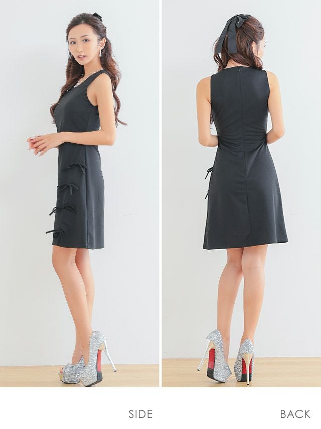 キャバドレス 安い 激安 ミニ丈 キャバクラ クラブ ラウンジ ノースリーブ リボンデザイン タイト ミニドレス プチプラドレス