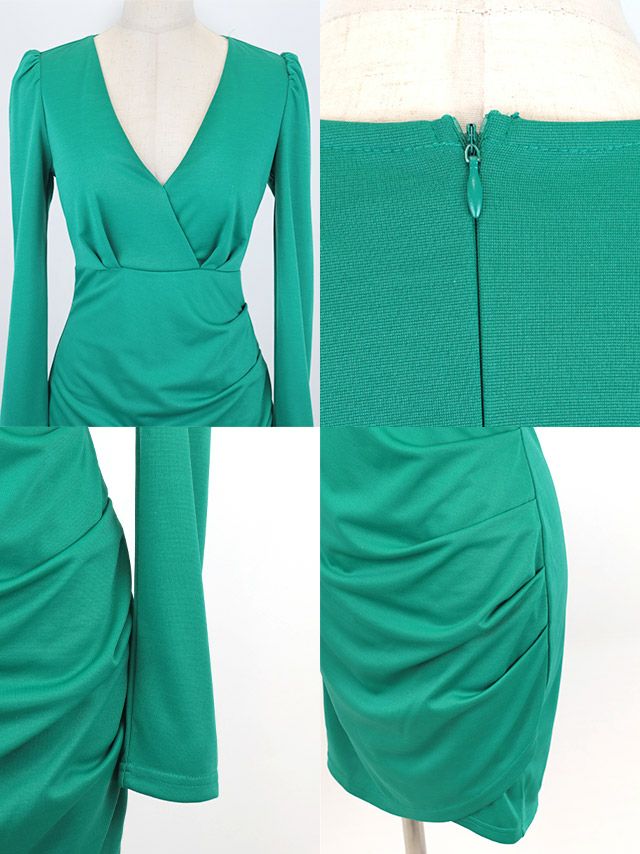 5. ミニドレス プチプラ 新人 タイト 長袖 ワンピース 低身長 谷間 スナック 同伴 シンプル グリーン キャバドレス (ちぴたん着用/S〜XXXLサイズ対応) | myMinette/マイミネット