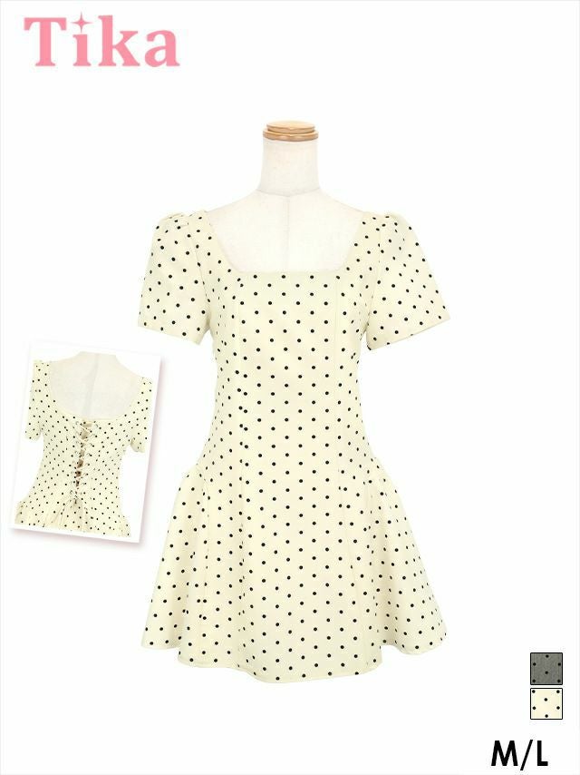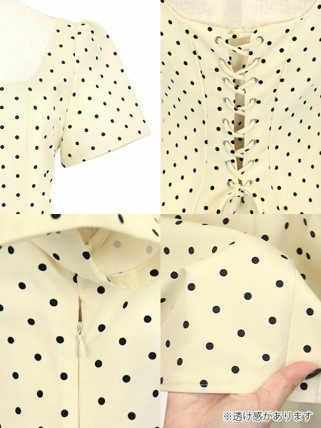 5. ワンピース Aライン ミニドレス 上品 ドット柄 半袖 パフスリーブ バックレースアップ ブラジャーのまま (黒嵜菜々子着用) [Tika/ティカ]