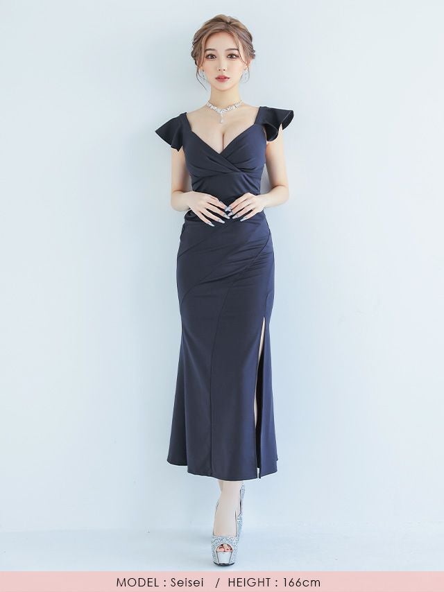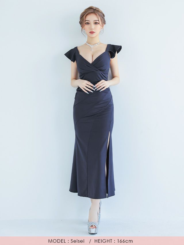 キャバドレス 安い 激安 ミニ丈 キャバクラ クラブ ラウンジ フリル袖 スリット 入り プチプラ Aライン ロング ドレス プチプラ ドレス
