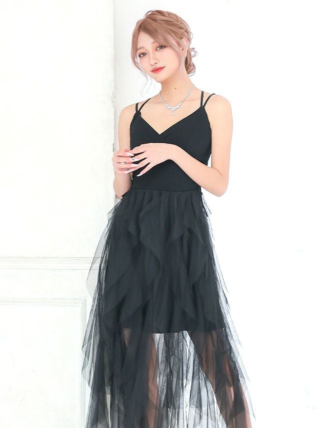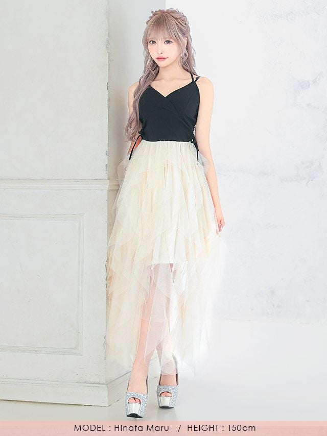 5. [SALE]チュールシアーウエストリボンバッククロスキャミソールAラインロングドレス (Sサイズ~Lサイズ) (林姫奈妙/キャバドレス着用) [myMinette/マイミネット]