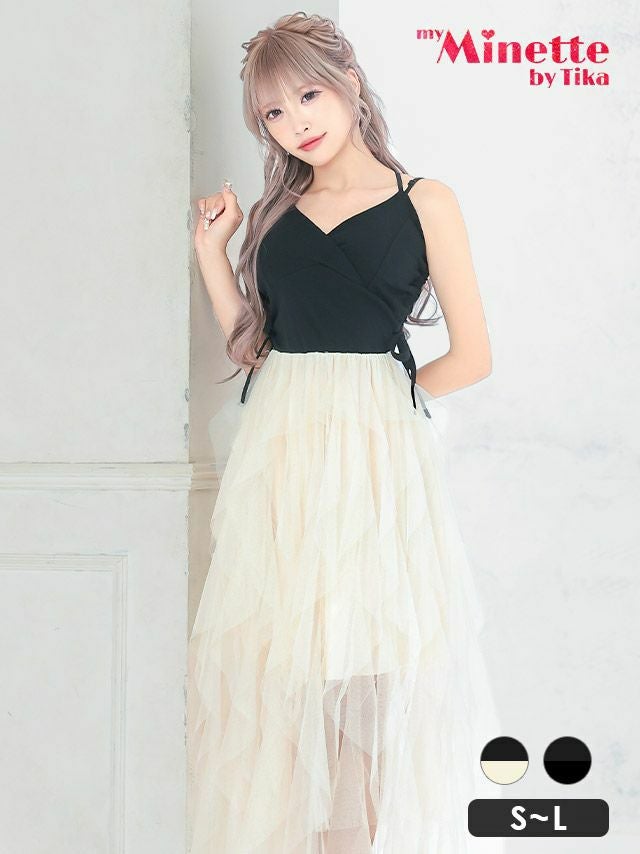 [SALE]チュールシアーウエストリボンバッククロスキャミソールAラインロングドレス (Sサイズ~Lサイズ) (林姫奈妙/キャバドレス着用) [myMinette/マイミネット]