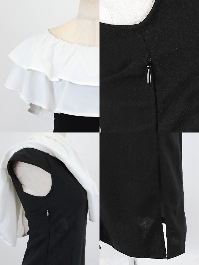 フリル バイカラー スリット タイト ロングドレスのディティール1