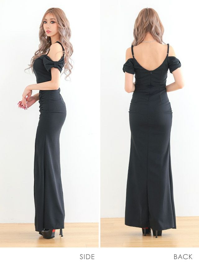 5. [SALE]キャミソール 袖リボン風 シースルー セクシー ロングドレス (Sサイズ〜XLサイズ)(あおぽん/キャバドレス着用)[myMinette/マイミネット]