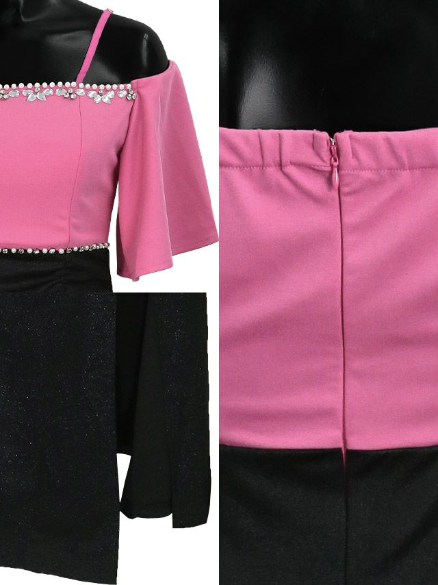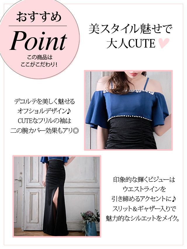 キャバドレス 安い 激安 ミニ丈 キャバクラ クラブ ラウンジ キャミソール フリル袖 肩あき サイドスリット ハイウエスト切替 ギャザー タイト ロング ドレス プチプラドレス