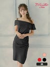 [SALE]ワンカラーワンショルダー胸元フリルタイトプチプラオフショルダー膝丈ドレス (Mサイズ)(中尾みほ/キャバドレス着用)[myMinette/マイミネット]