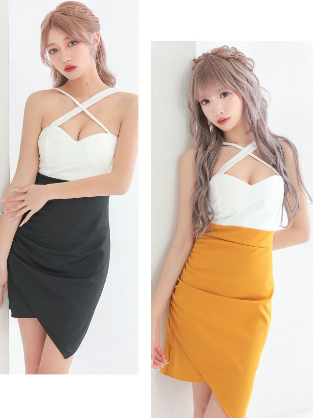 5. [SALE]ホルターネッククロスネックバイカラープチプラタイトミニドレス (Mサイズ/Lサイズ) (林姫奈妙/キャバドレス着用)[myMinette/マイミネット]