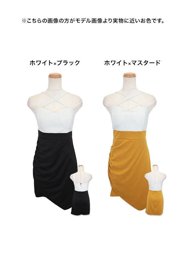 [SALE]ホルターネッククロスネックバイカラープチプラタイトミニドレス (Mサイズ/Lサイズ) (林姫奈妙/キャバドレス着用)[myMinette/マイミネット]