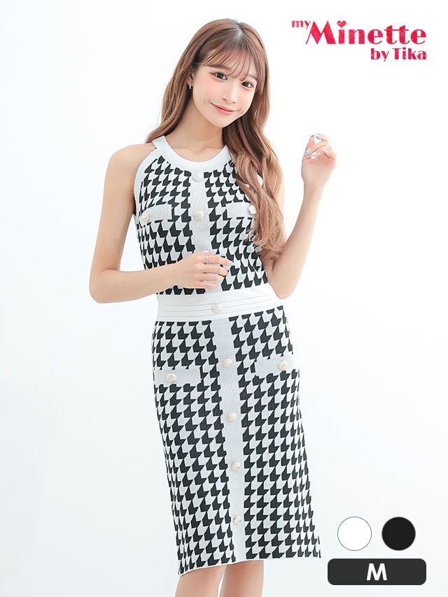 3. [SALE]ホルターネック千鳥格子柄プチプラ韓国タイト膝丈ドレス (Mサイズ)(今井アンジェリカ/キャバドレス着用)[myMinette/マイミネット]