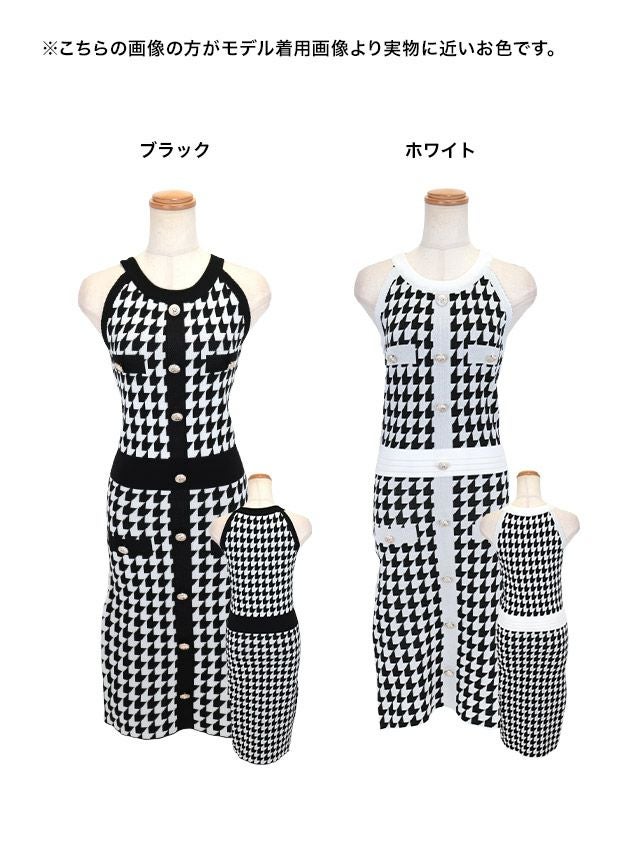 ホルターネック千鳥格子柄プチプラ韓国タイト膝丈ドレスのカラー画像
