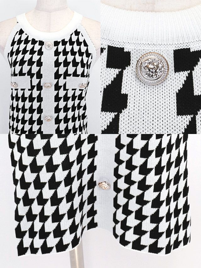 ホルターネック千鳥格子柄プチプラ韓国タイト膝丈ドレスのディティール画像