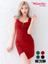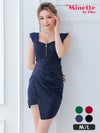 3. [SALE] ミニドレス プチプラ 新人 タイト ジップ セクシー ノースリーブ 低身長 谷間 背中魅せ ネイビー ワンカラー ギャザー入り ラップ デザイン キャバドレス (せいせい着用/M~Lサイズ対応) | myMinette/マイミネット