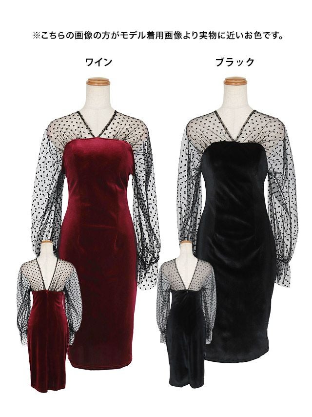 5. [SALE]シースルードット柄長袖タイトプチプラ膝丈ドレス(S~Lサイズ) (せいせい/キャバドレス着用)[myMinette/マイミネット]