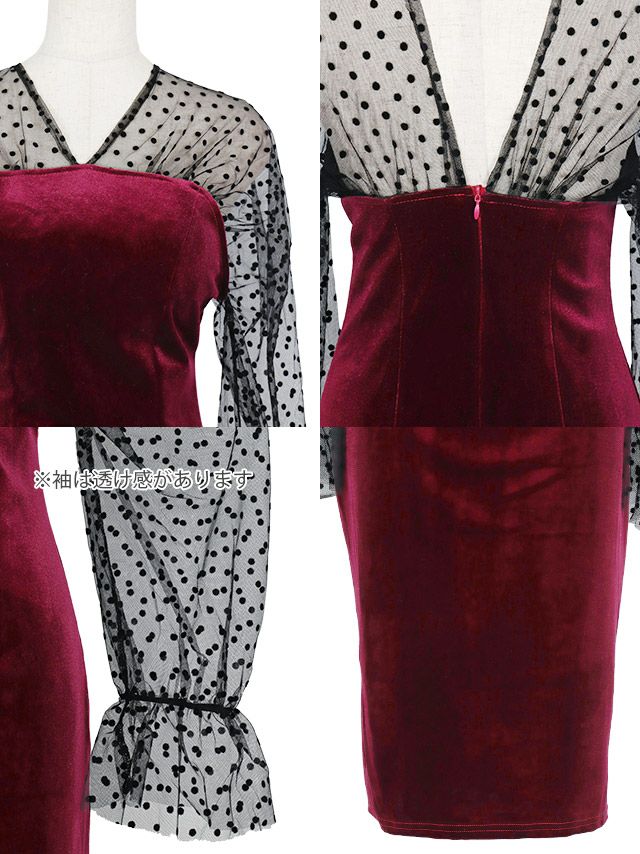 4. [SALE]シースルードット柄長袖タイトプチプラ膝丈ドレス(S~Lサイズ) (せいせい/キャバドレス着用)[myMinette/マイミネット]