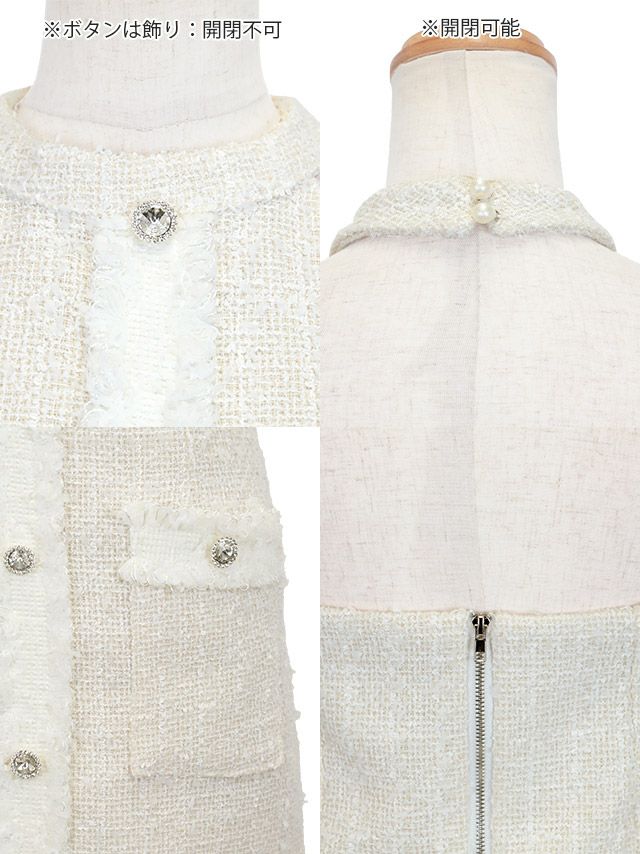 4. [SALE]プチプラ上品ツイードフロントビジューボタンホルターネックタイトミニドレス(Sサイズ/Mサイズ)(向葵まる/キャバドレス着用)【ネコポス便対応可350円】[myMinette/マイミネット]