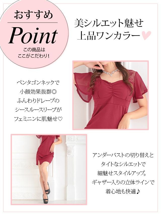 ペンタゴンネックギャザー入りタイトミニドレスサイドバック