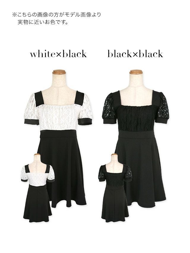 スクエアネック袖ありレースAラインミニドレス