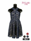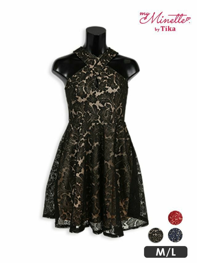 [SALE]ノースリーブリーフレース クロスネックプチプラフレアミニドレス (Mサイズ~Lサイズ) (中尾みほ/キャバドレス着用) [myMinette/マイミネット]