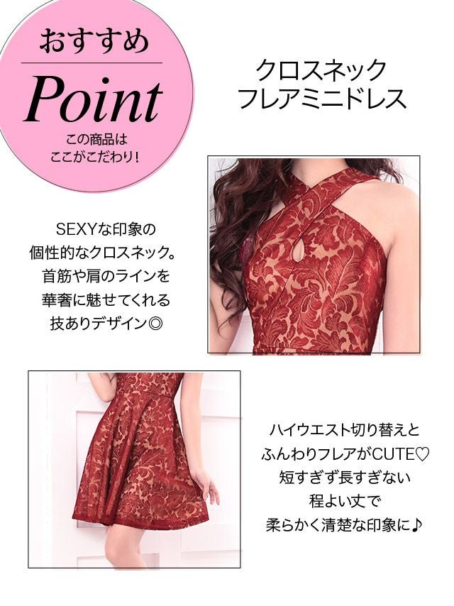 キャバドレス 激安 aライン フレアドレス ナイトドレス キャバ嬢 キャバクラ ラウンジ スナック 安い 通販 フレアリーフレース クロスネックミニドレス
