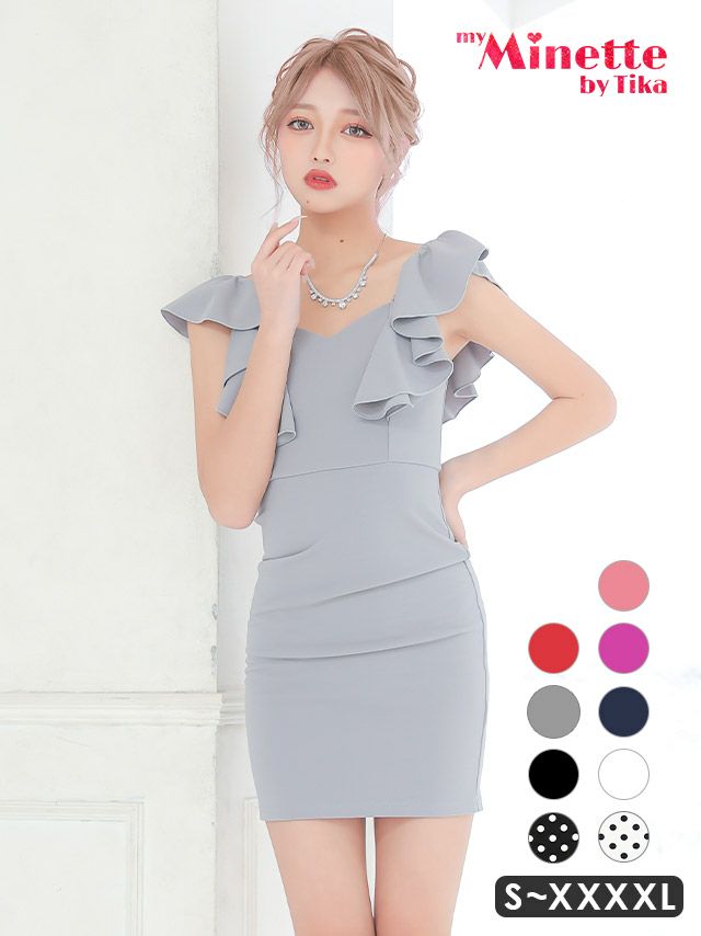 [SALE]ノースリーブシンプルワンカラーノースリーブフリル袖ドット柄プチプラタイトミニドレス (Sサイズ~XXXXLサイズ) (林姫奈妙/キャバドレス着用)[myMinette/マイミネット]