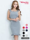 5. [SALE]ノースリーブストレッチノースリーブフリルガーリータイトプチプラ膝丈ドレス(Sサイズ~XXXXLサイズ)(向葵まる/キャバドレス着用)[myMinette/マイミネット]