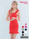 3. [SALE]ノースリーブドット柄スクエアネックノースリーブフリル袖プチプラタイトミニドレス (Sサイズ~XXXXLサイズ) (林姫奈妙/キャバドレス着用)[myMinette/マイミネット]