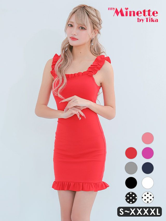 3. [SALE]ノースリーブスクエアネックノースリーブフリル袖プチプラタイトミニドレス (Sサイズ~XXXXLサイズ) (なぎ/キャバドレス着用)[myMinette/マイミネット]