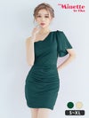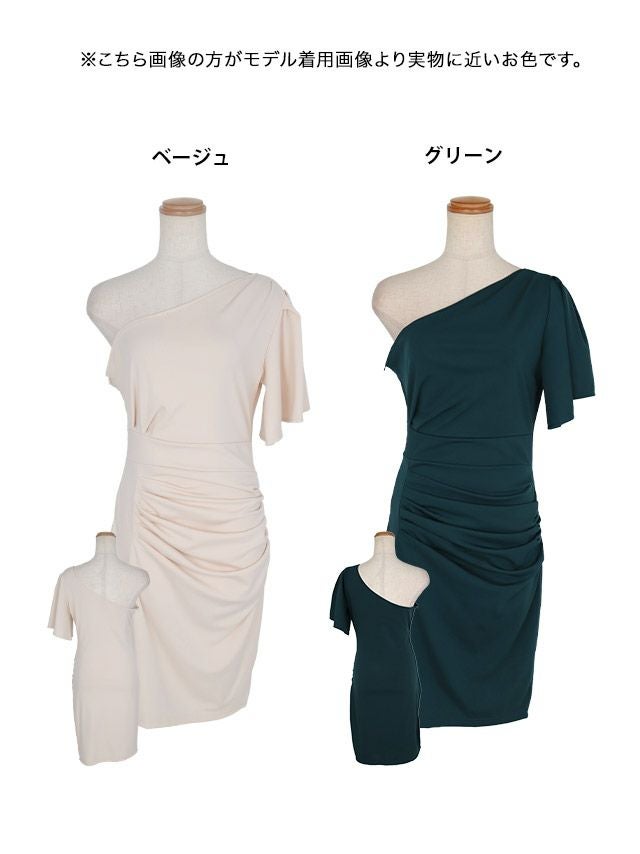 ワンショルダー肩あきギャザー入りプチプラタイトミニドレス