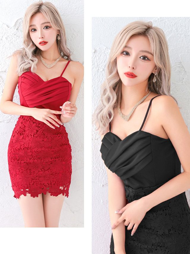 キャバドレス 安い 激安 ミニ丈 キャバクラ クラブ ラウンジ キャミソール ギャザー 切替 レース タイト ミニドレス プチプラドレス