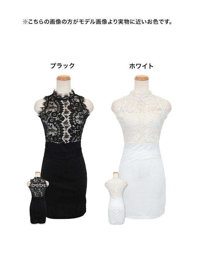 3. [SALE]ノースリーブウエスト切り替えフラワーレースシンプルプチプラタイトミニドレス (Mサイズ/Lサイズ) (向葵まる/キャバドレス着用)[myMinette/マイミネット]