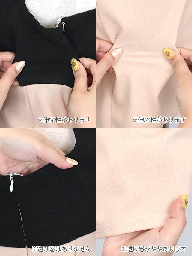 バックオープンシアー長袖ウエストベルトタイトミニドレスのカラー