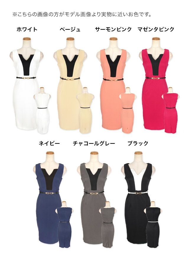キャバドレス 安い 激安 ミニ丈 キャバクラ クラブ ラウンジ ノースリーブ ウエスト ベルト バイカラー タイト 膝丈 ドレス プチプラドレス