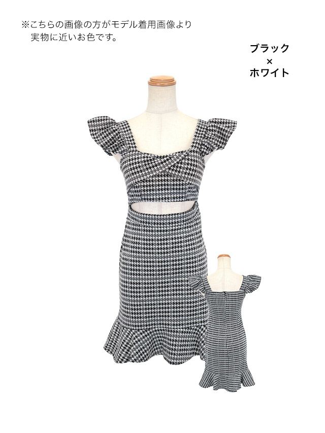 千鳥格子柄ノースリーブフリル袖バストクロスウエストカットタイトミニドレスのカラー